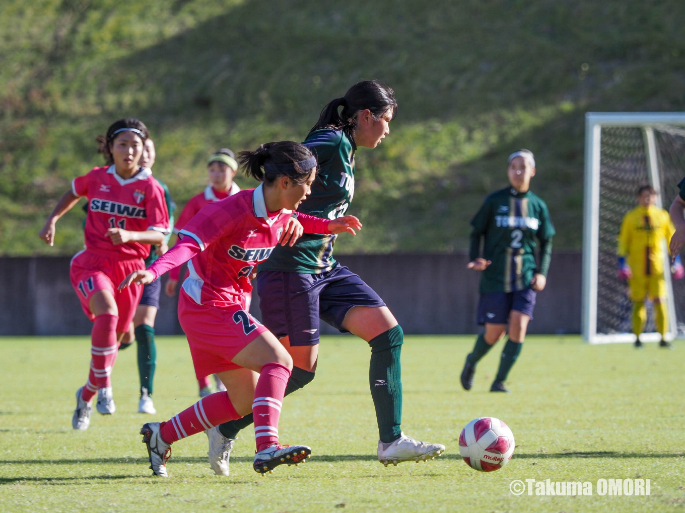 前半2分にはFW白木珠奈(3年、白岡SCL)、同10分にはFW東堂正枝(2年、北海道リラ・コンサドーレ)の得点をアシスト。後半7分には自身が蹴ったコーナーキックがゴールラインを割り、この日の1点目を記録する。