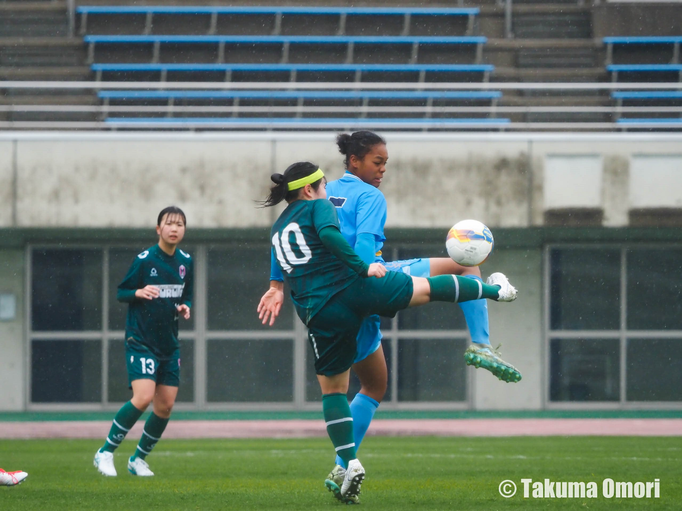 守備では粘り強さに加えて、相手のバックパスに応じてプレスをかけて中盤で回収するなど、ボールを奪いにいく。攻撃に転じると、FW今野彩花(3年)が中盤に落ちてきてボールを収め、そこからの展開を試みた。