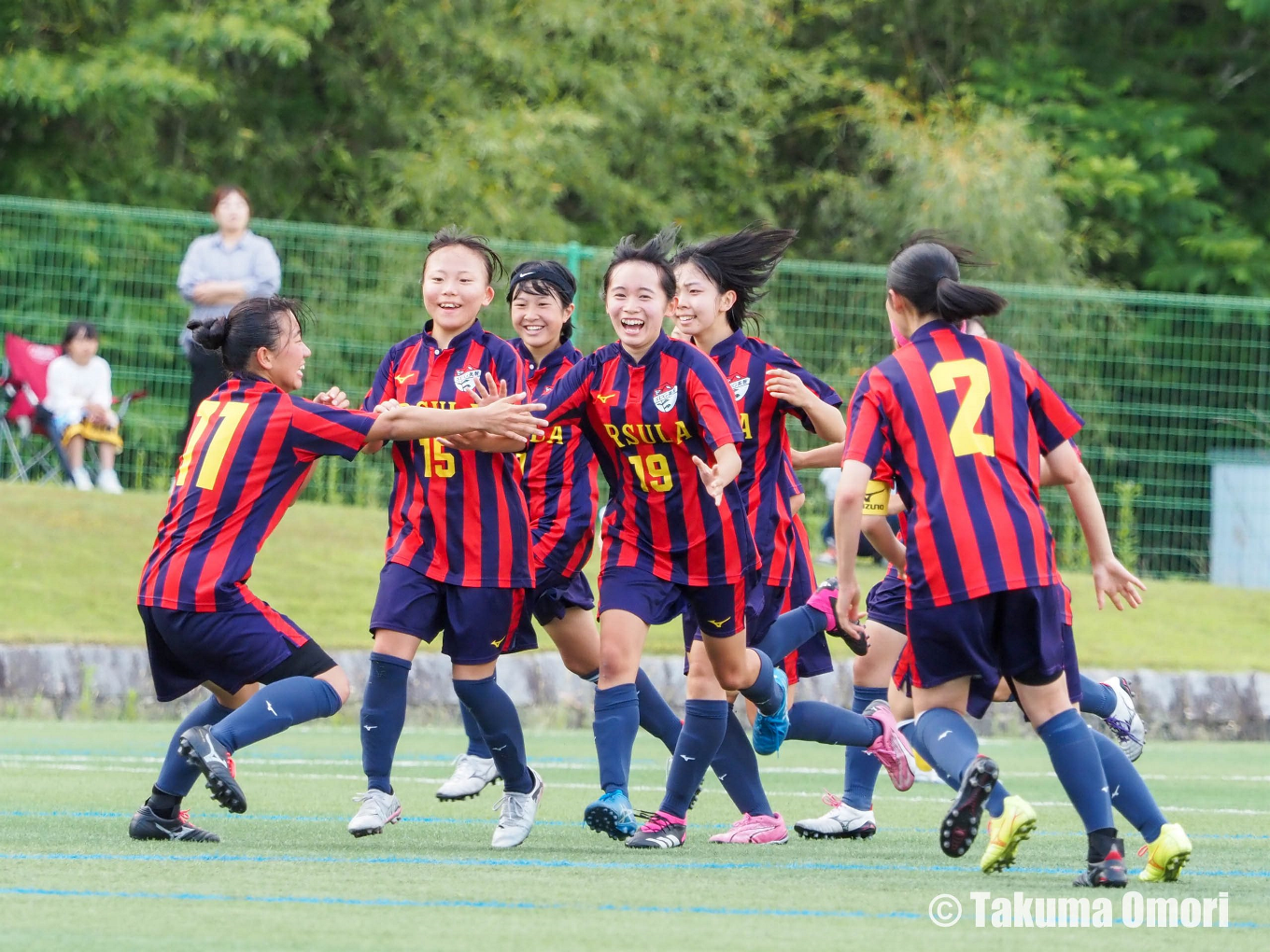 そして後半終了まで残り4分となった31分、聖ウルスラ学院はMF伊東蓮夏(3年)のパスを受けたMF山内詩乃(1年)が勝ち越し点を挙げる。対する仙台育英も終了間際の34分にコーナーキックから決定的なヘディングシュートを放つが、クロスバーに救われる。そして聖ウルスラ学院の勝利を告げるタイムアップの笛が鳴り、歓喜の瞬間が訪れた。
