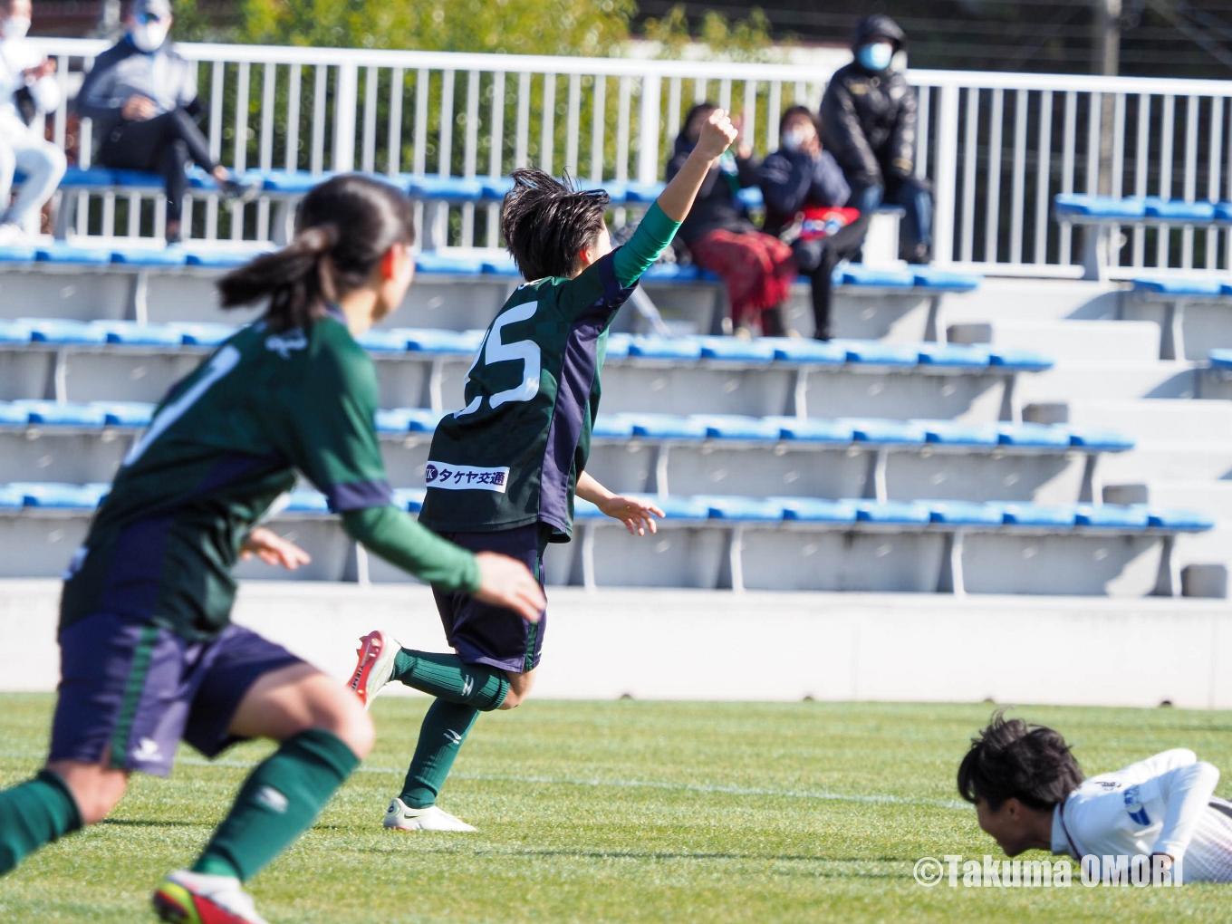 逆転勝利の立役者は2年生FW白木珠奈である。「とにかく前に走って、点を獲ることを考えた」と、1点ビハインドの後半開始からFW茂垣咲椰夏に代わって投入される。前半はボール保持しながらも押し込まれる時間帯が長く、失点もした。後半は徐々にいい守備を攻撃につなげ、相手陣内でボールを動かす時間を増やしていく。