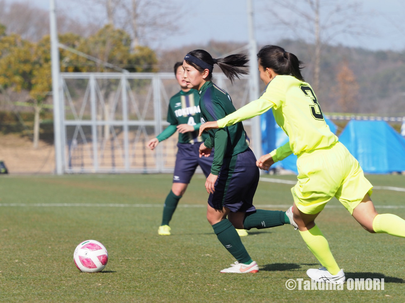 機転の効いたパス1本で生まれた先制点だったが、この後もシンプルにゴールをめざす形が多く、常盤木学園本来のサッカーを展開できない。霞ヶ浦は前半17分にMF折田澪(2年)の得点で試合を振り出しに戻すと、後半開始早々の6分にDF岡田知里(3年)のゴールで勝ち越しに成功する。