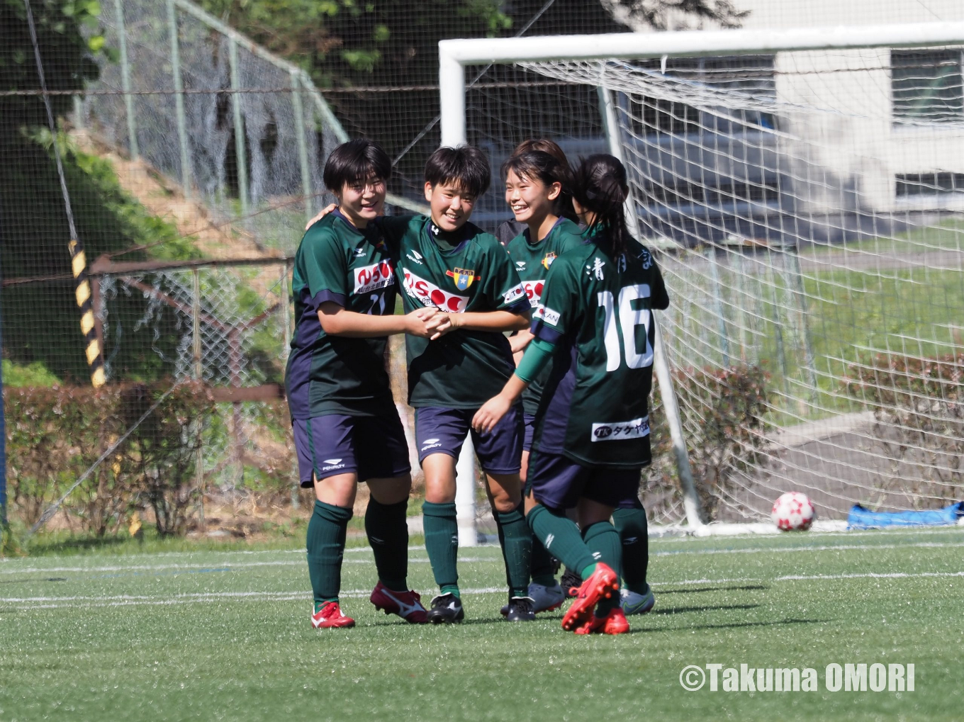 さらに前半終了間際の45分、伊藤結菜が相手のパスをインターセプト。このボールを高塚映奈(3年)につなぎ、高塚のパスから伊藤璃胡(3年)が決める。3−1と突き放して前半を折り返した。