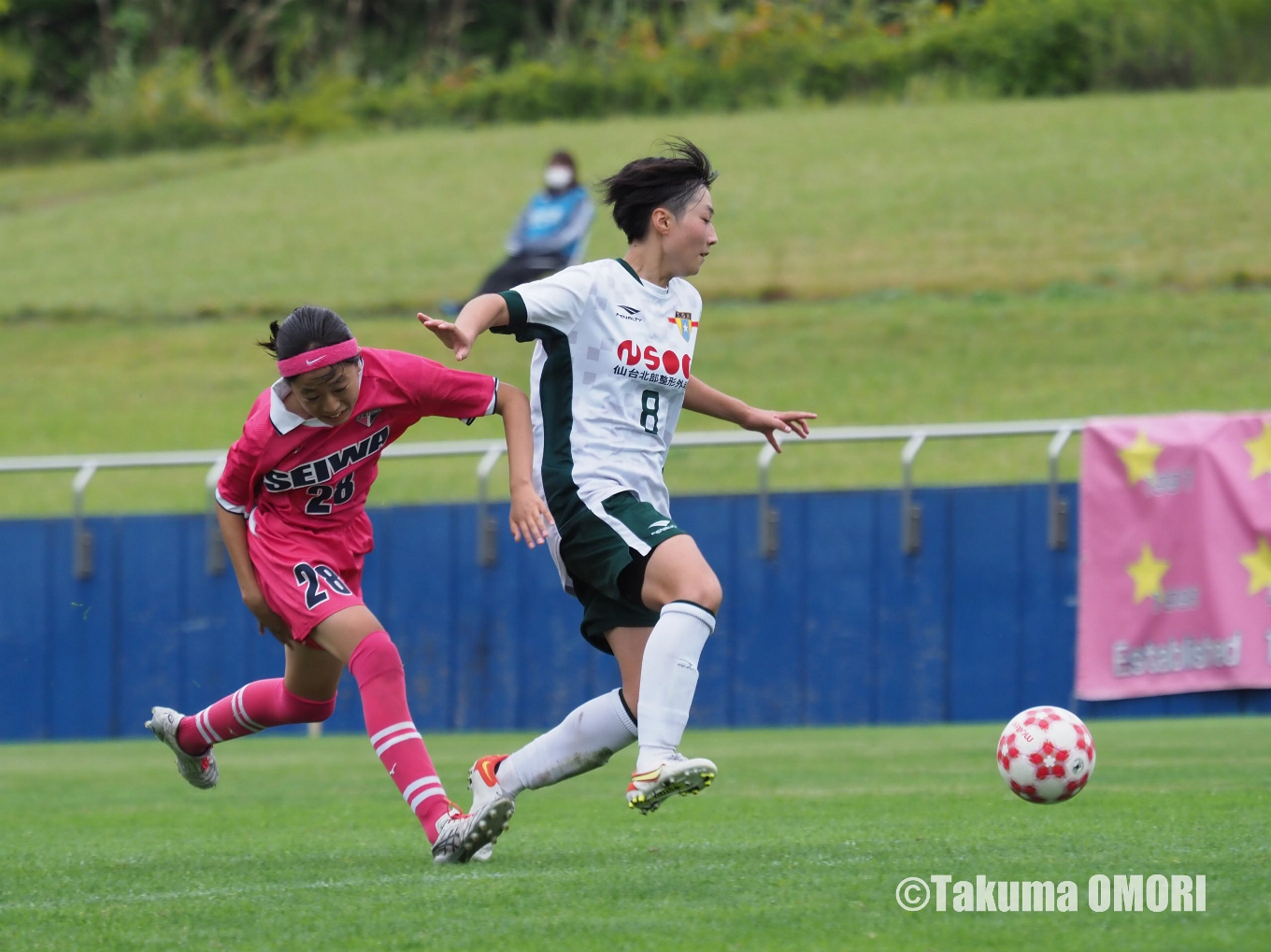 そうした流れで試合が動く。前半28分、ペナルティーエリアへの侵入を許した常盤木学園がPKを献上。これをMF早瀬彩来が決めた聖和学園がリードを奪う。