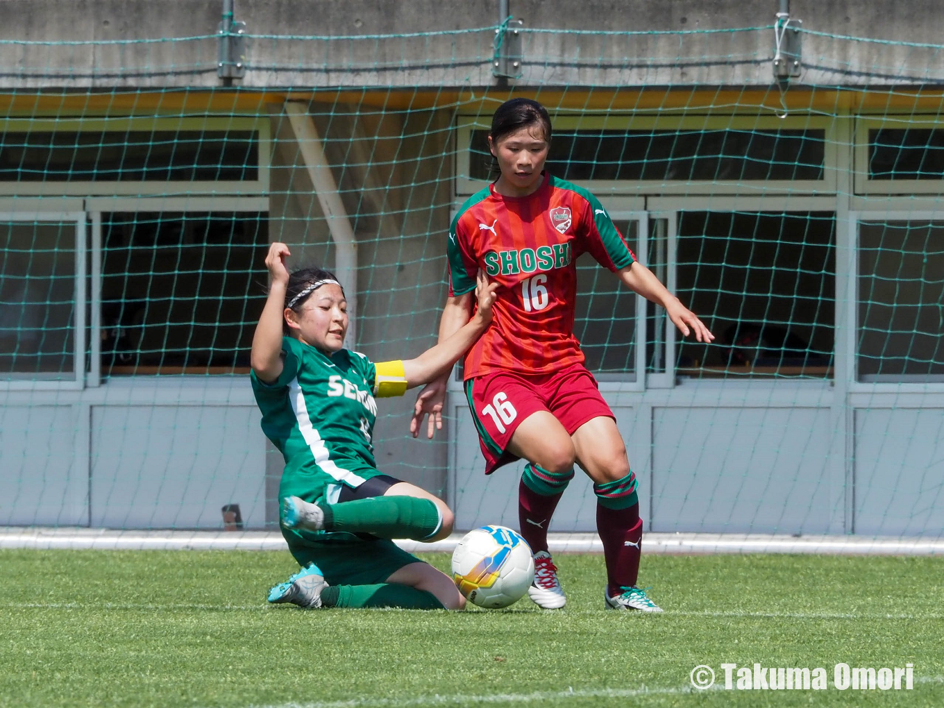 前半18分にはゴールポスト直撃のシュートからのコーナーキックをパンチングで防ぐと、つづく29分にはDF三船さくら(3年)が放った鋭いフリーキックからのシュートがゴール右隅を襲うがパンチングで逃れる。決定的なシーンだった。その後も安定したキャッチで尚志に得点を許さず、1-0とリードして前半を折り返した。